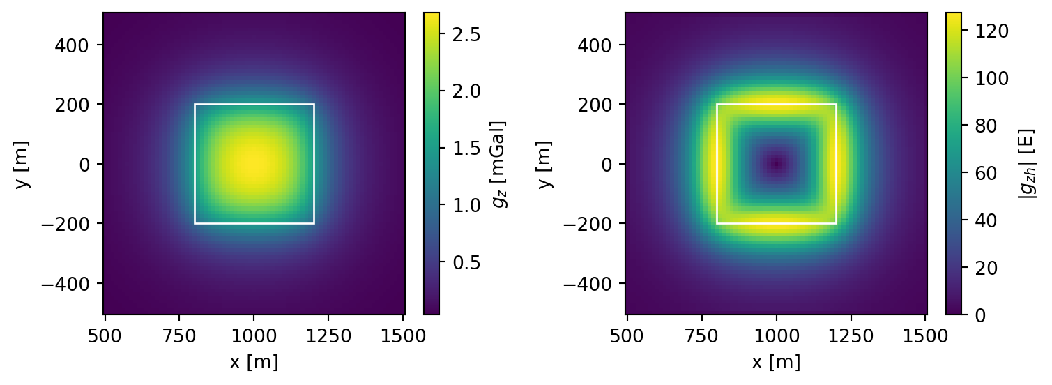 Das folgende Beispiel zeigt den Betrag des Horizontalgradienten am Beispiel eines rechtwinkligen Quaders: