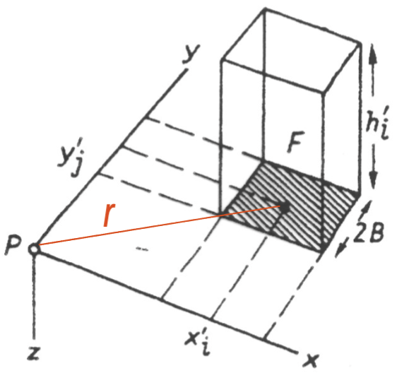 Näherungsformel für vertikales Prisma mit quadratischer Grundfläche und Kantenlänge \(2B\)